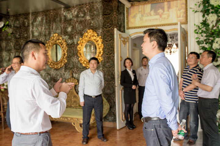 廖健副市(shì)長(cháng)一(yī)行認真觀看(kàn)我公司門(mén)店接待場地,饒有興趣地觀看(kàn)企業(yè)品牌文化建設宣傳櫥窗(chuāng)和專業(yè)攝影棚,并親切地與員(yuán)工(gōng)交談,詢問了具體工(gōng)作情況。龍立董事(shì)長(cháng)就(jiù)凱旋門(mén)基本情況、近三年(nián)改革轉型問題,特别是進駐長(cháng)沙市(shì)芙蓉區浏陽河婚文化園開(kāi)店經營的情況、未來工(gōng)作願景和計劃及請求解決的問題等方面進行了詳細的彙報(bào),與會(huì)領導圍繞支持長(cháng)沙老字号商貿企業(yè)發展、打造城(chéng)市(shì)文化名片紛紛建言獻策,提出了許多(duō)意見(jiàn)和建議。