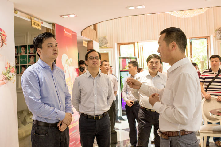 2016年(nián)5月(yuè)4日上(shàng)午,風和日麗,陽光(guāng)明媚。凱旋門(mén)有限責任公司員(yuán)工(gōng)翹首企盼,滿懷激情,迎接長(cháng)沙市(shì)人民(mín)政府副市(shì)長(cháng)廖健一(yī)行來到(dào)我公司浏陽河婚慶園店進行專題調研,指導老字号商貿企業(yè)轉型發展。長(cháng)沙市(shì)商務局局長(cháng)高(gāo)偉、副局長(cháng)黃立斌和長(cháng)沙市(shì)服務有限責任公司董事(shì)長(cháng)譚燦輝、我公司董事(shì)長(cháng)龍立等陪同調研。